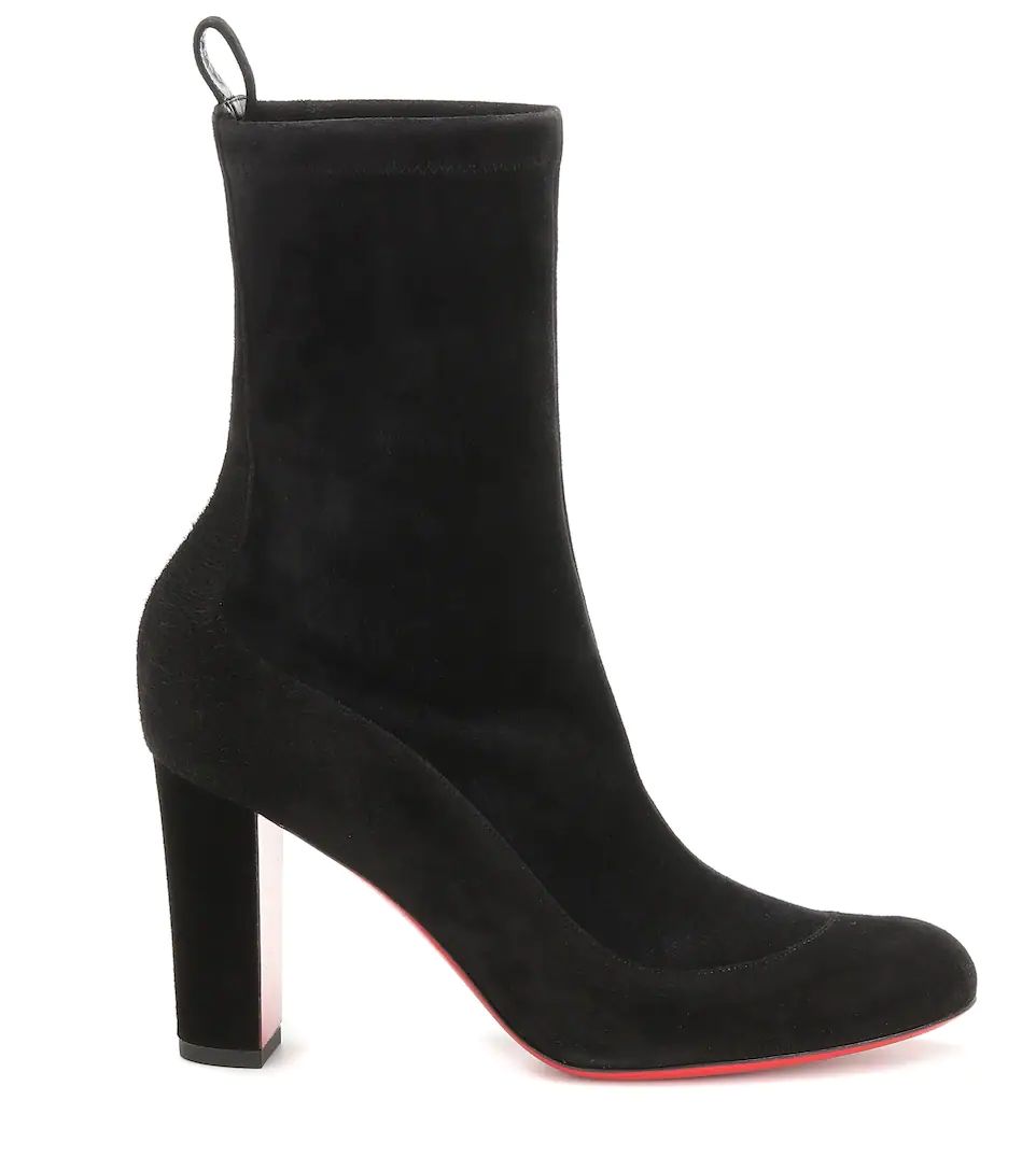 Christian Louboutin's signature red soles add punch to the classically-chic Gena 85 ankle boots. This Italian-made design has been crafted from black suede with almond toes, high shafts and elegant block heels. Let yours carry you from day to dark, matching them to suiting separates and midi dresses alike.