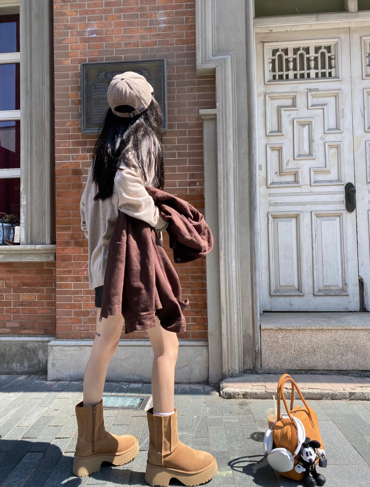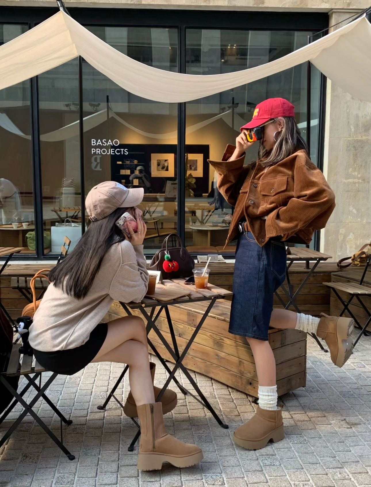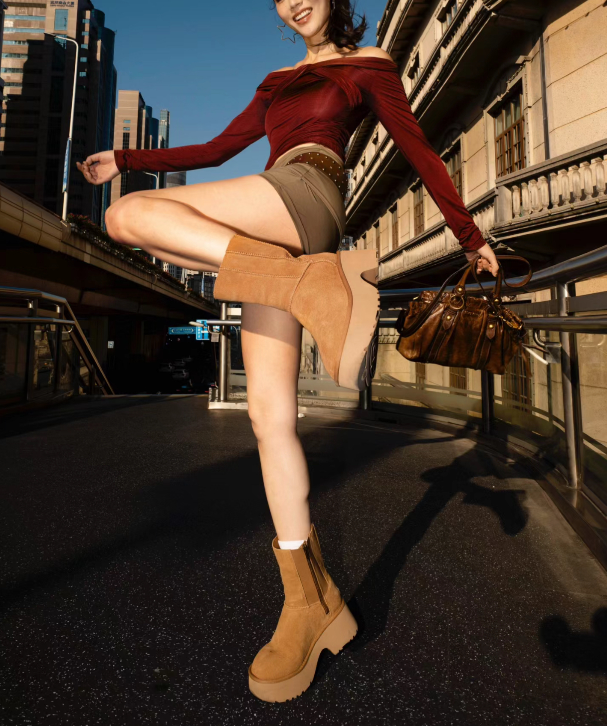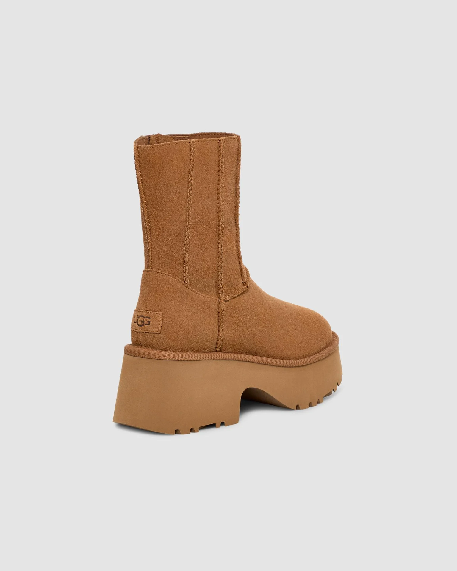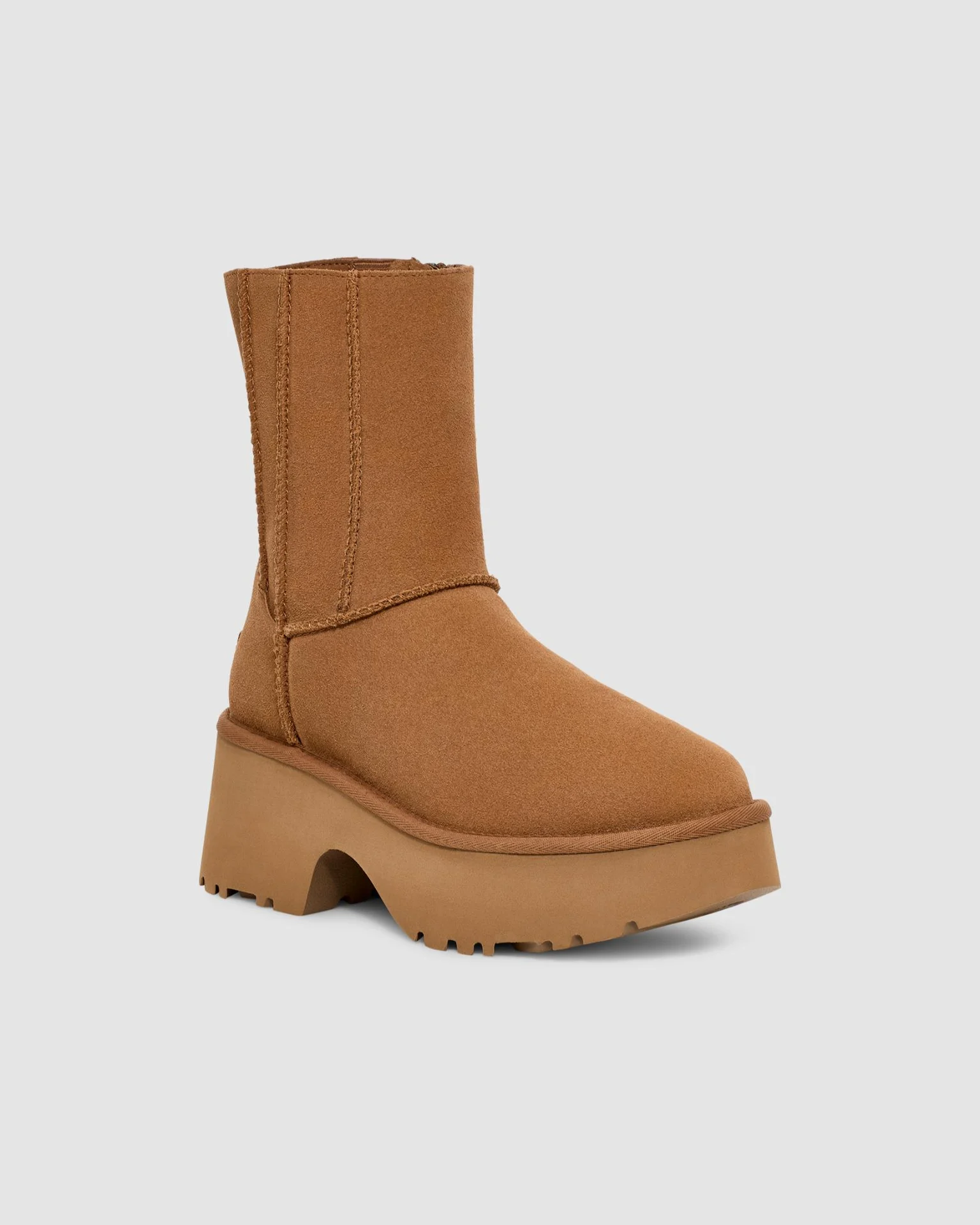 モダンなプラットフォームと約7cmのヒール、長いシャフトを採用したこのClassic Twin Seam New Heights(クラシック ツイン シーム ニュー ハイツ)からは、いつでも自分らしさを表現する、という確固たるモットーが感じられます。ツインシームのディテールをあしらったスエードを使用し、ブランドのシグネチャーである贅沢なUGGplush?ブレンドのライニングを施しています。軽量で様々なシーンで履けて、どんなプランにも対応してくれる頼もしいブーツです。