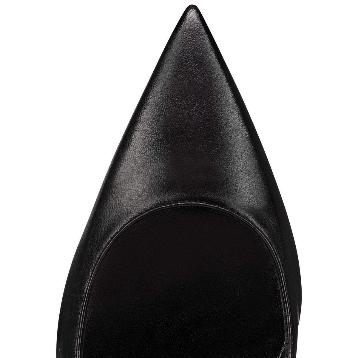 The Condora pump has a pointed toe like a bird's beak. This sophisticated style in black leather has a daring low-cut vamp revealing the foot. It has an 100 mm slanted heel, showcasing Maison Christian Louboutin's innovative creativity. With its sleek lines playing with graphic elements, this loafer exudes timeless elegance.