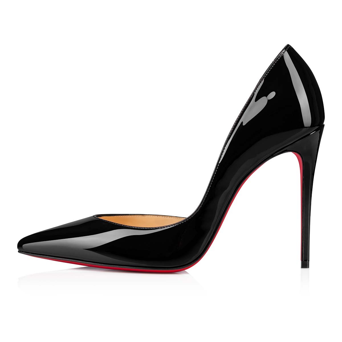 クリスチャン ルブタンならではのハーフドルセースタイルを、なめらかなブラックのパテントレザーでタイムレスに仕上げたIriza。