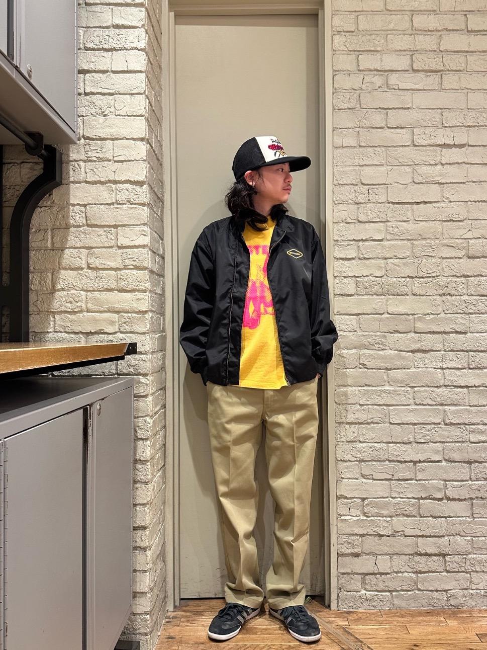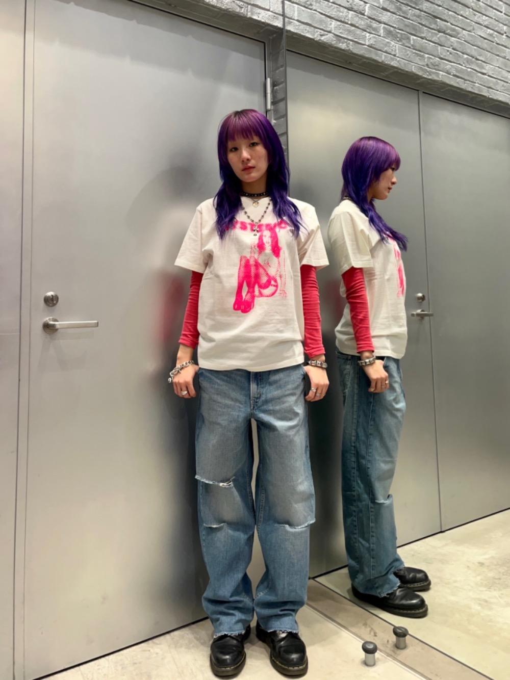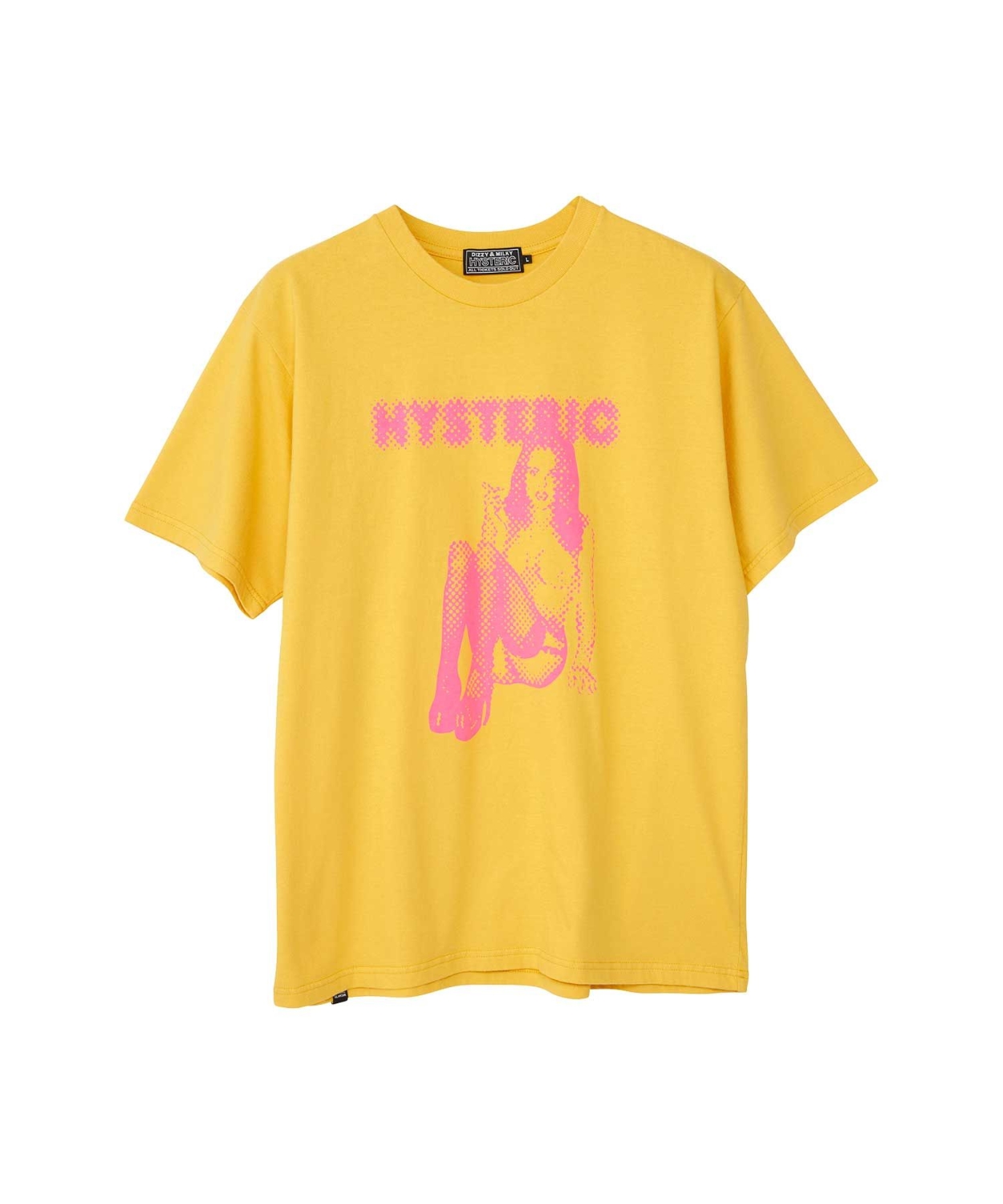 裏路地に貼ってあるナイトクラブのチラシを感じさせるチープで妖艶なHYSTERIC GLAMOUR初期のグラフィックをブラッシュアップして仕上げた一枚。肉厚でハリのあるカジュアルな素材を使用。