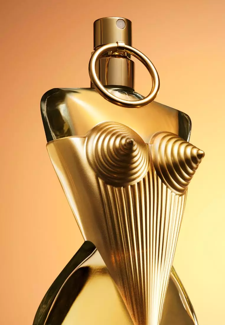 The gold of a liberating corset. An homage to women, GAULTIER DIVINE proudly shows off her voluptuous and uninhibited curves. Gaultier's famous corset is much more than an item of lingerie, it is a precious jewel that honours women’s bodies and showcases their diversity. Covered in gold. Conical and already iconic.