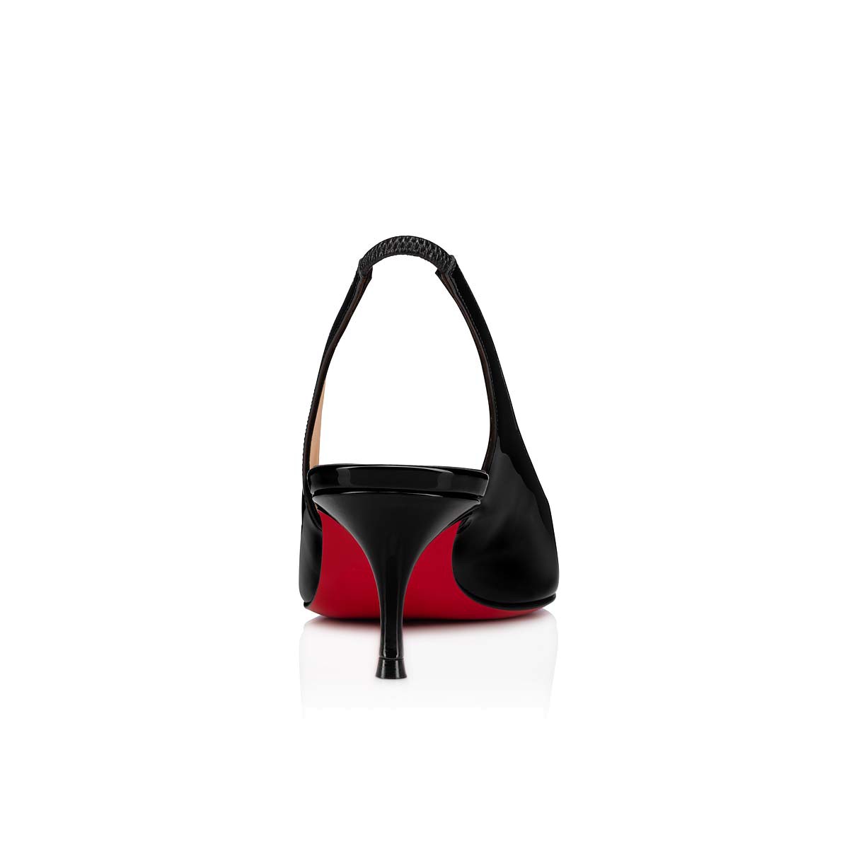 上品さと洗練さを兼ね備えたアイコニックなミュール、Kate Sling。都会的なエレガンスを感じさせるブラックのパテントカーフレザーで全体を仕立て、アイコニックなネックラインへと繋がる構築的なアッパーが、足元をさりげなく彩ります。クリスチャン ルブタンならではのノウハウが自信に溢れる女性を演出する、55㎜のヒールです。