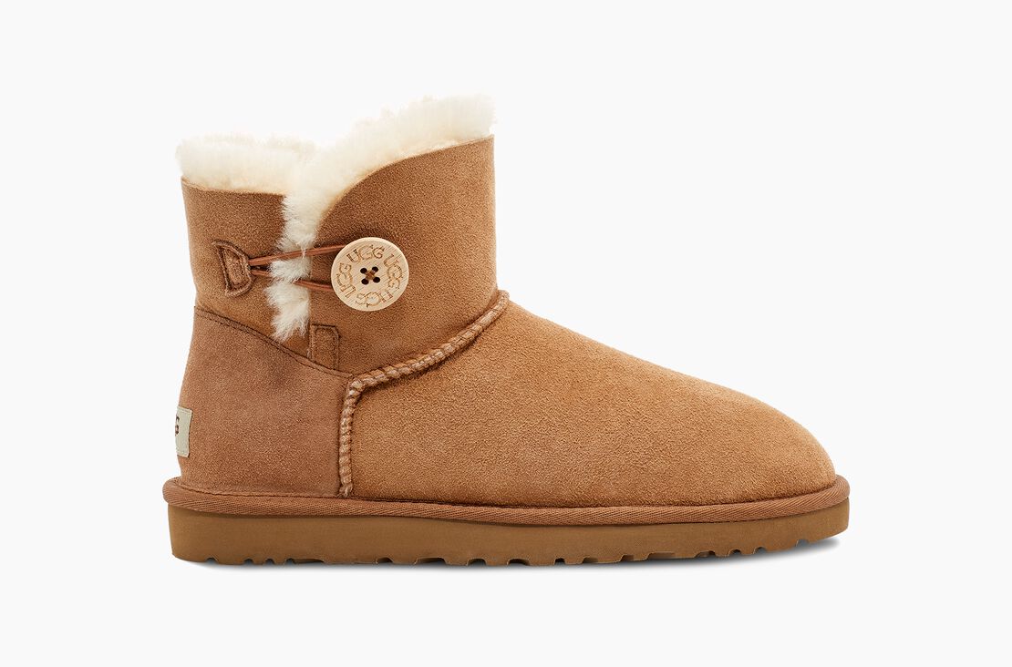カッティングとサイドボタンが人気のミニ丈ブーツに機能性をプラスしアップデートしたMINI BAILEY BUTTON II(ミニベイリーボタン II)。ラグジュリアスなツインフェイスシープスキンのアッパーには撥水・防汚加工を施し、アウトソールには軽量でクッション性やグリップ力に優れたTreadlite by UGG™を採用。長年愛され続けているシルエットはそのままに、より魅力的に進化させました。