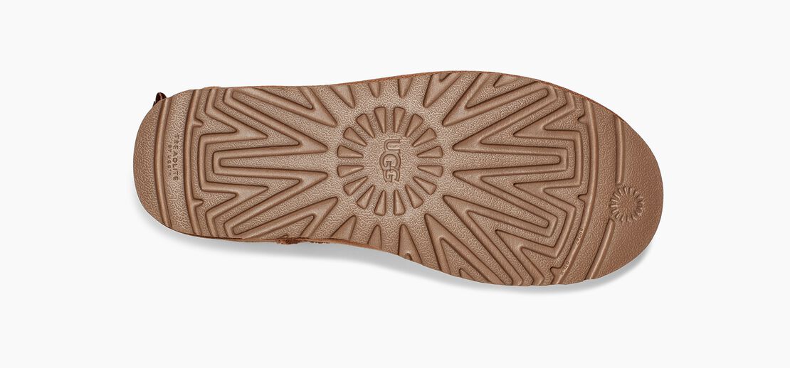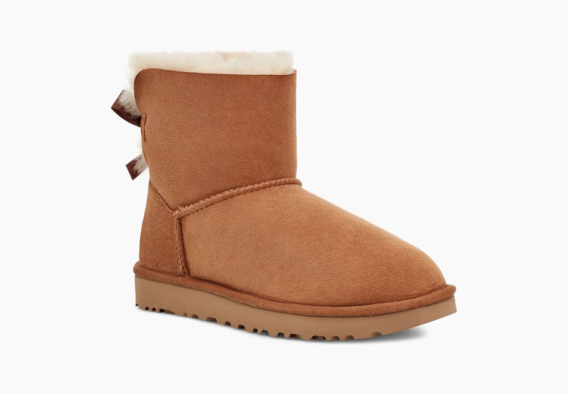 キュートなバックリボンが人気のミニ丈ブーツに機能性をプラスしアップデートしたMINI BAILEY BOW II(ミニベイリーボウ II)。ラグジュリアスなツインフェイスシープスキンのアッパーには撥水・防汚加工を施し、アウトソールには軽量でクッション性やグリップ力に優れたTreadlite by UGG™を採用。長年愛され続けているシルエットはそのままに、より魅力的に進化させました。