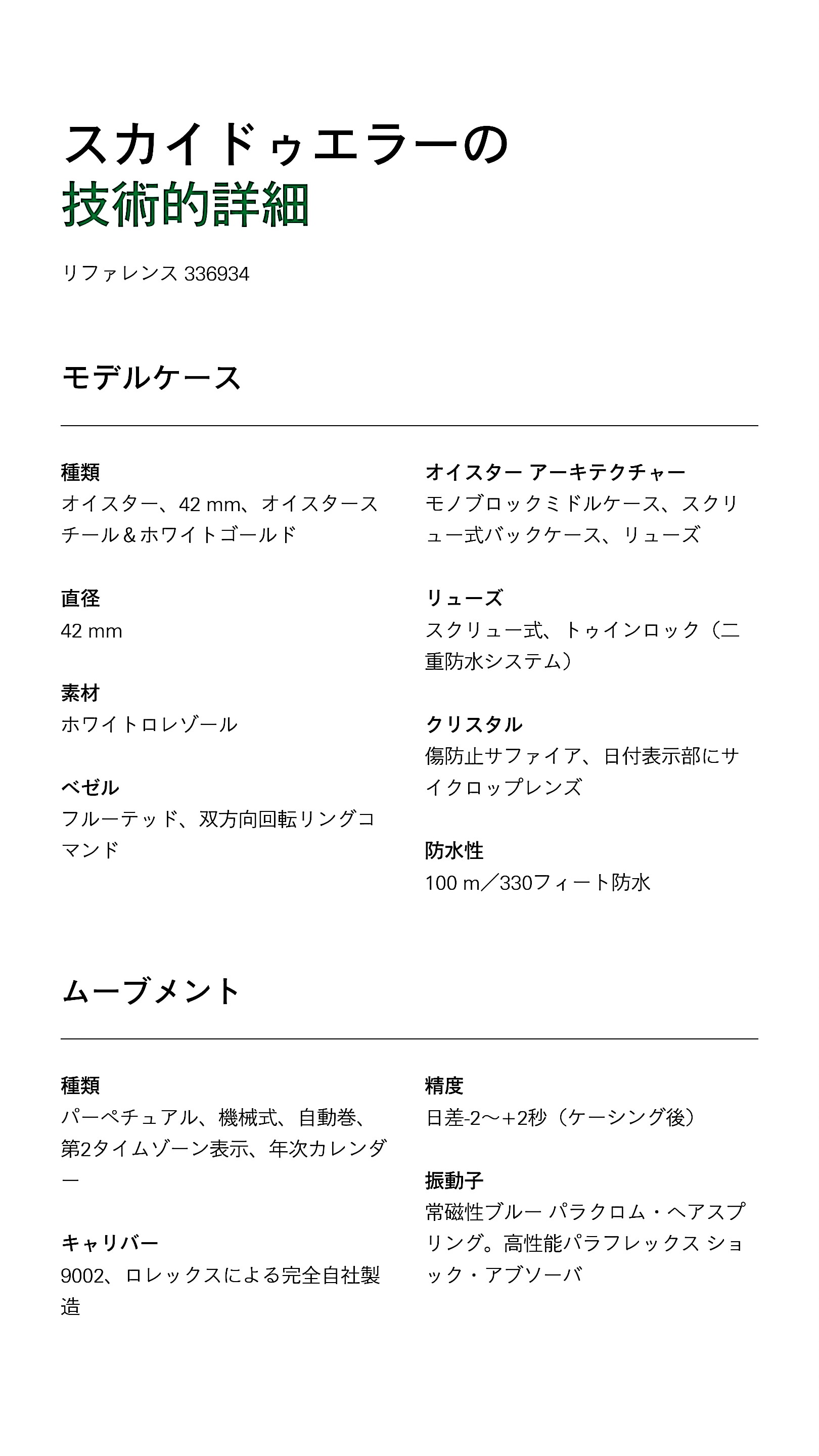 ロレックス スカイドゥエラー オイスター、42 mm、オイスタースチール&ホワイトゴールド リファレンスm336934-0001