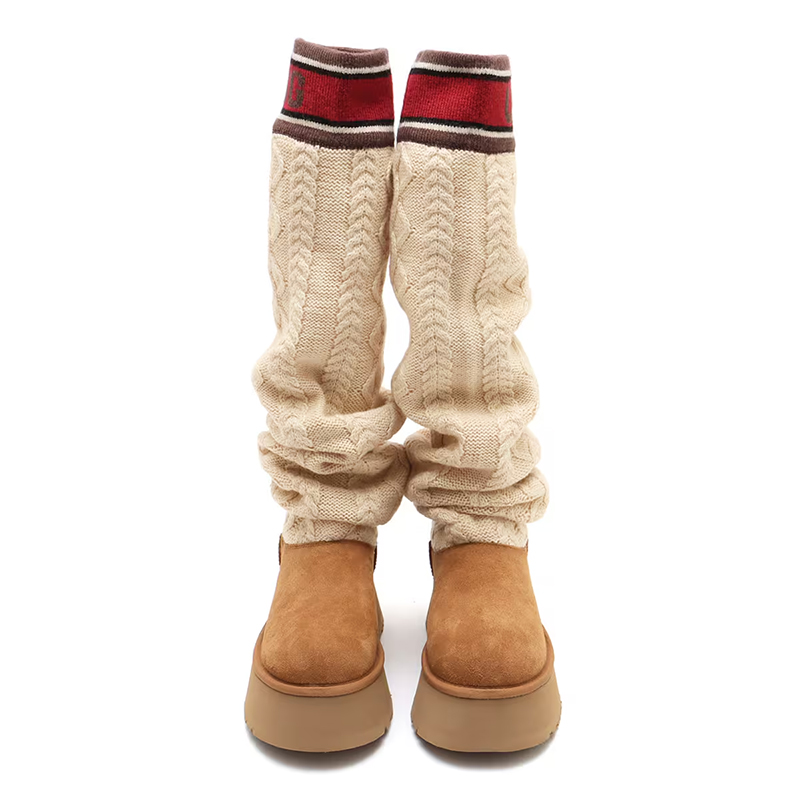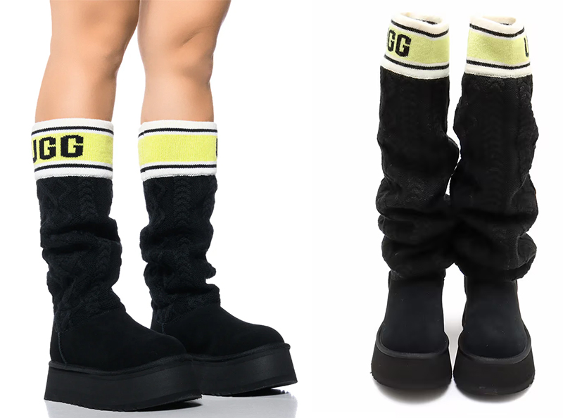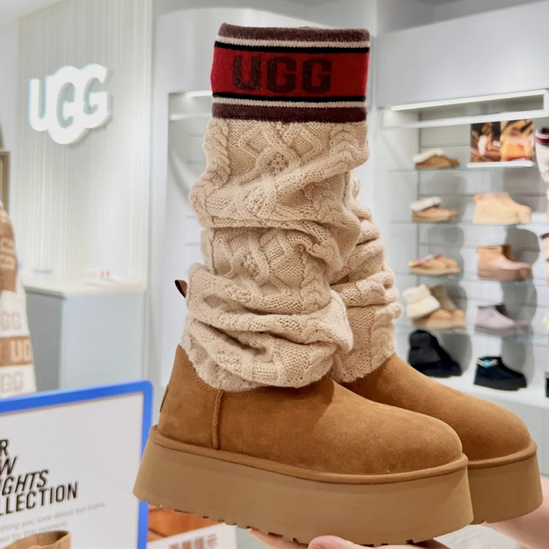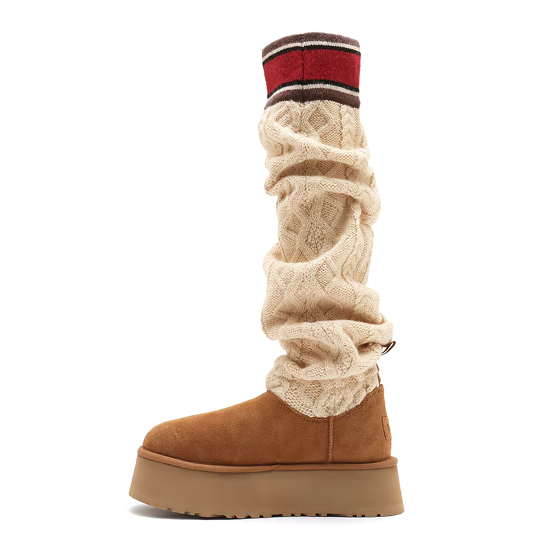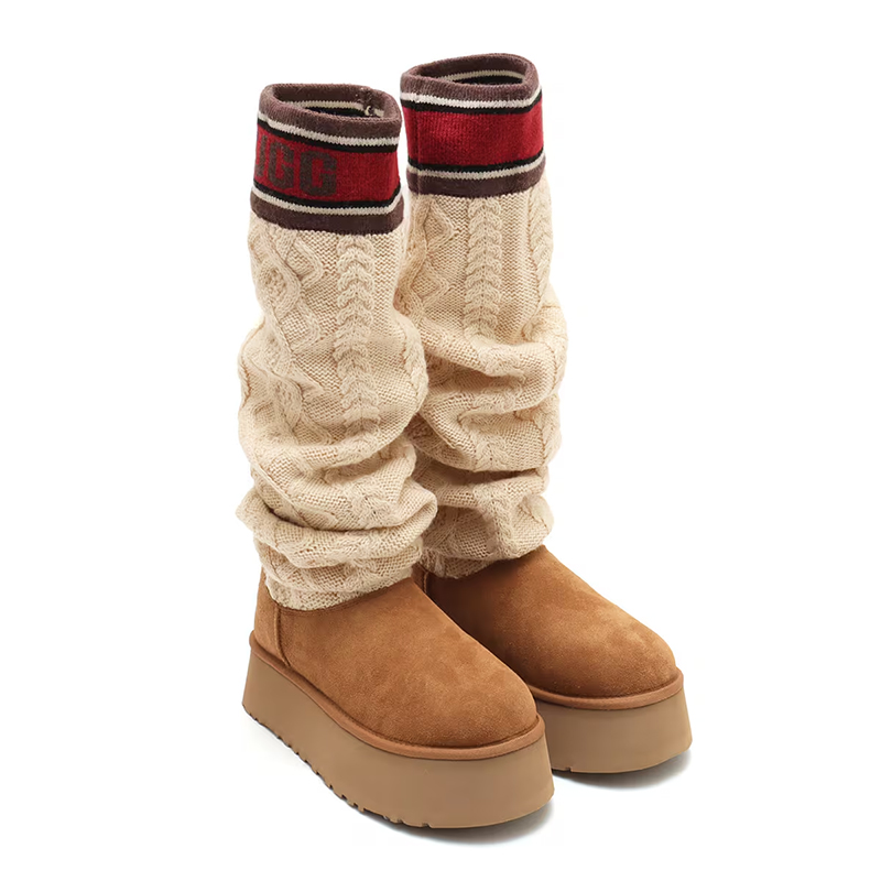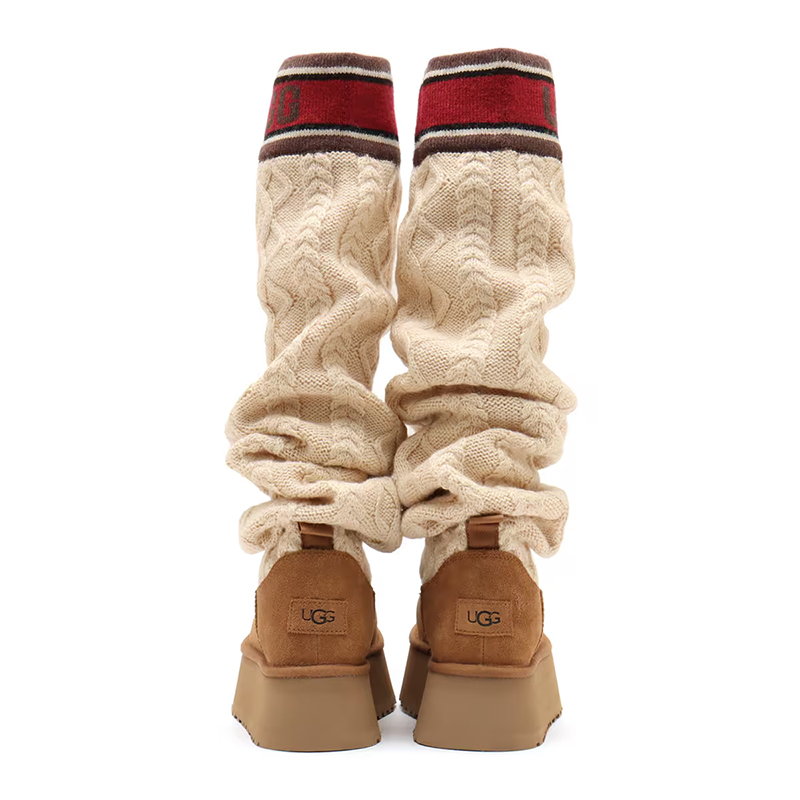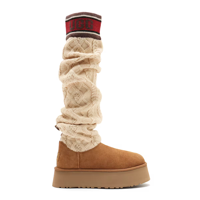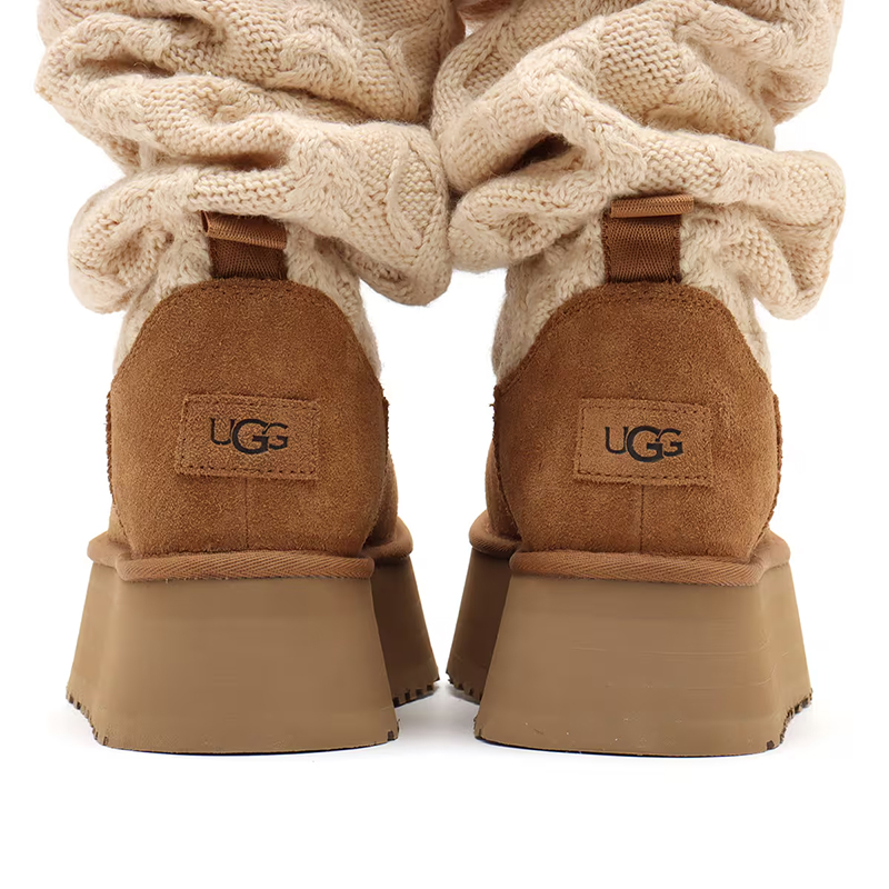 ・スエードヒールカウンター、UGGロゴ、タスマンケーブルニット、スエードヴァンプ