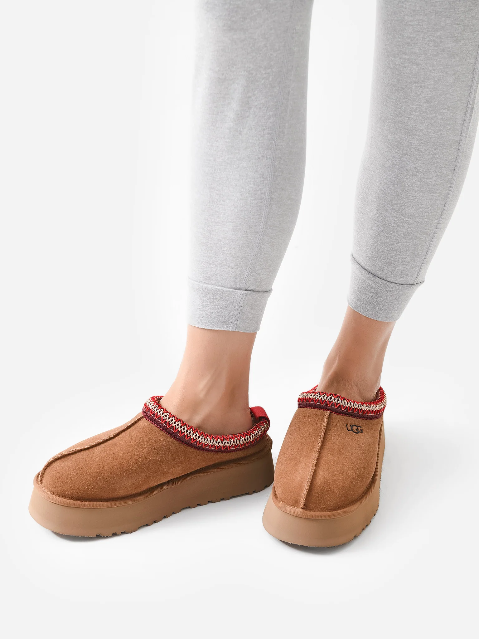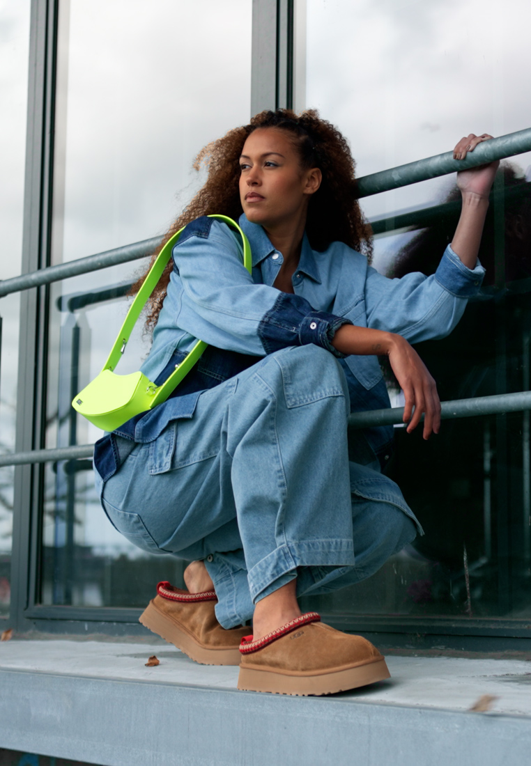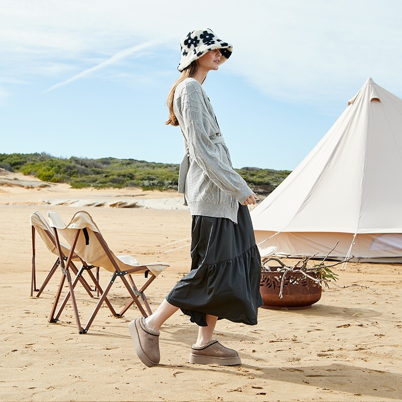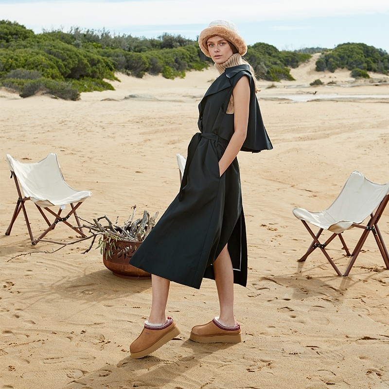 UGG®のタイムレスなスリッパTasman(タスマン)を大胆にアレンジしたTazz(タズ)は、約4.4cmのプラットフォームソールで定番シルエットをリフレッシュ。オリジナルと同じリッチなスエードで作られ、UGG®のシグネチャーであるUGGplush™ウールブレンドのライニングが施され、厚底ソールでもクッション性が高く、屋内外を問わず、スリッパのような履き心地を楽しめます。